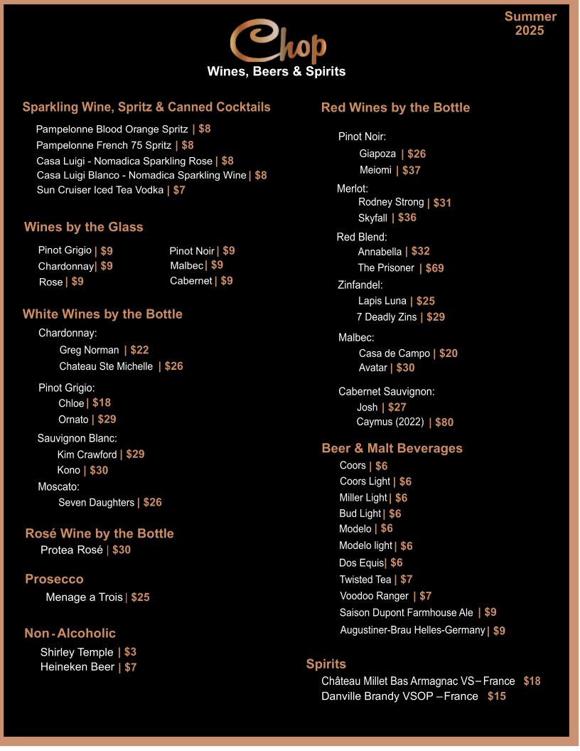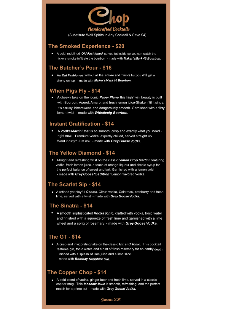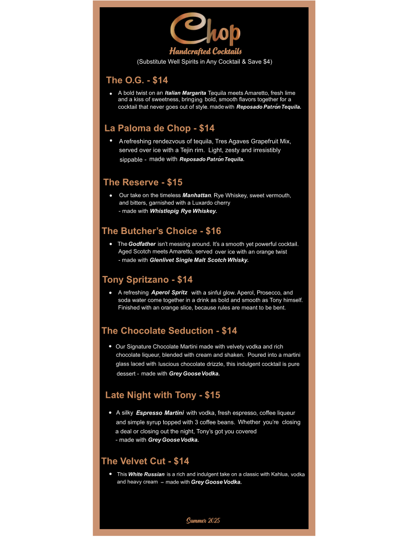 Welcome to Chop - Pueblo, a culinary gem nestled within the Pueblo Community College, located at 900 W Orman Ave, Pueblo, CO. This upscale steakhouse has quickly garnered attention for its exquisite menu and exceptional service, where each dish is crafted to perfection.